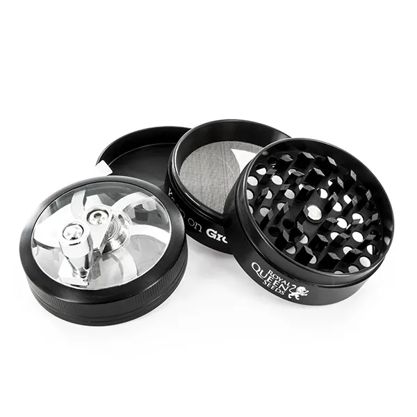Ο Royal Queen Seeds Grinder είναι ένας ανθεκτικός μεταλλικός μύλος 4 τμημάτων με χειρολαβή και διαφανές καπάκι, που προσφέρει γρήγορη άλεση και συλλογή γύρης με μέγιστη απόδοση και ελάχιστη απώλεια.
